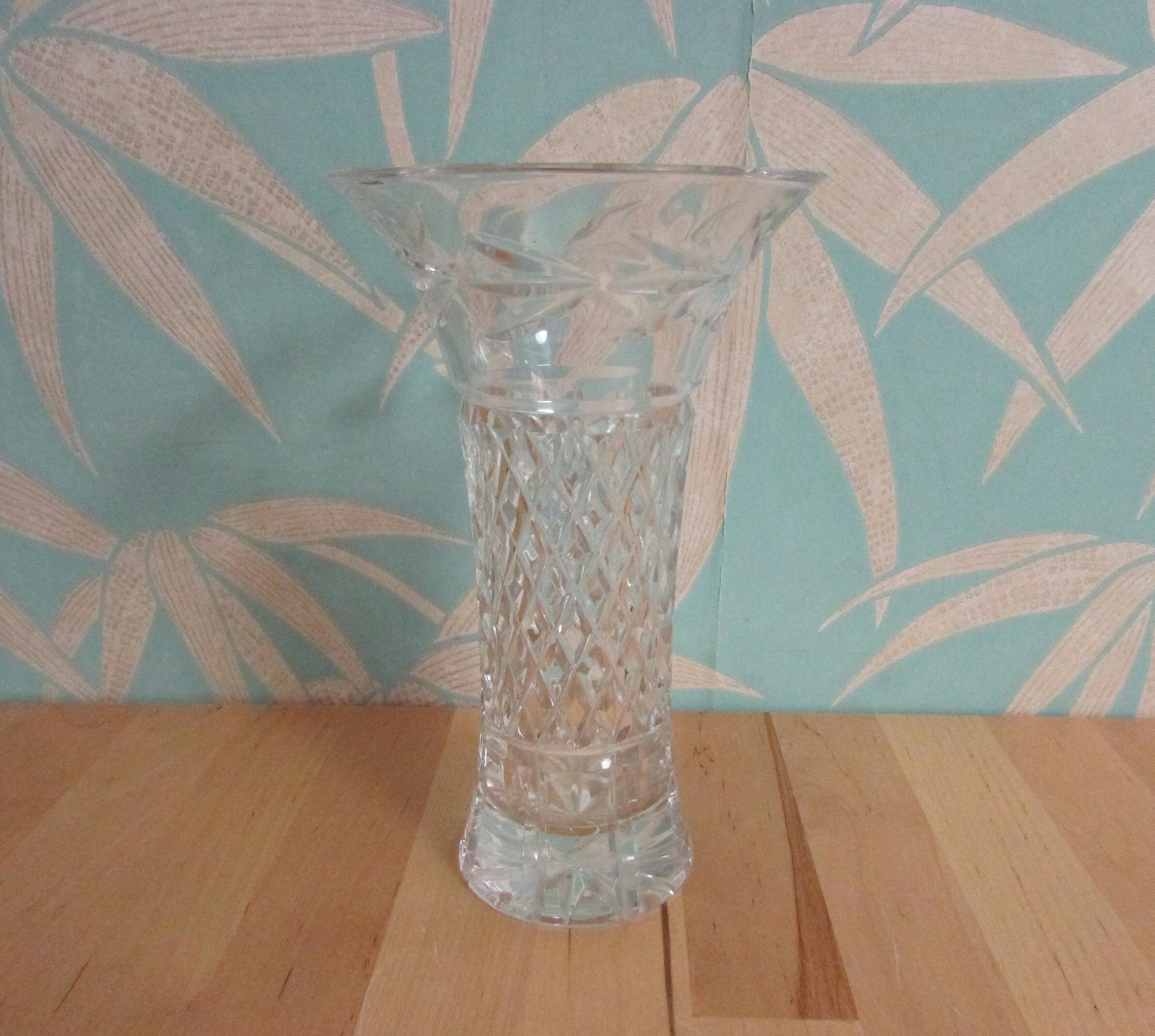 Vintage Galway Irish clear cut lead crystal waisted vase