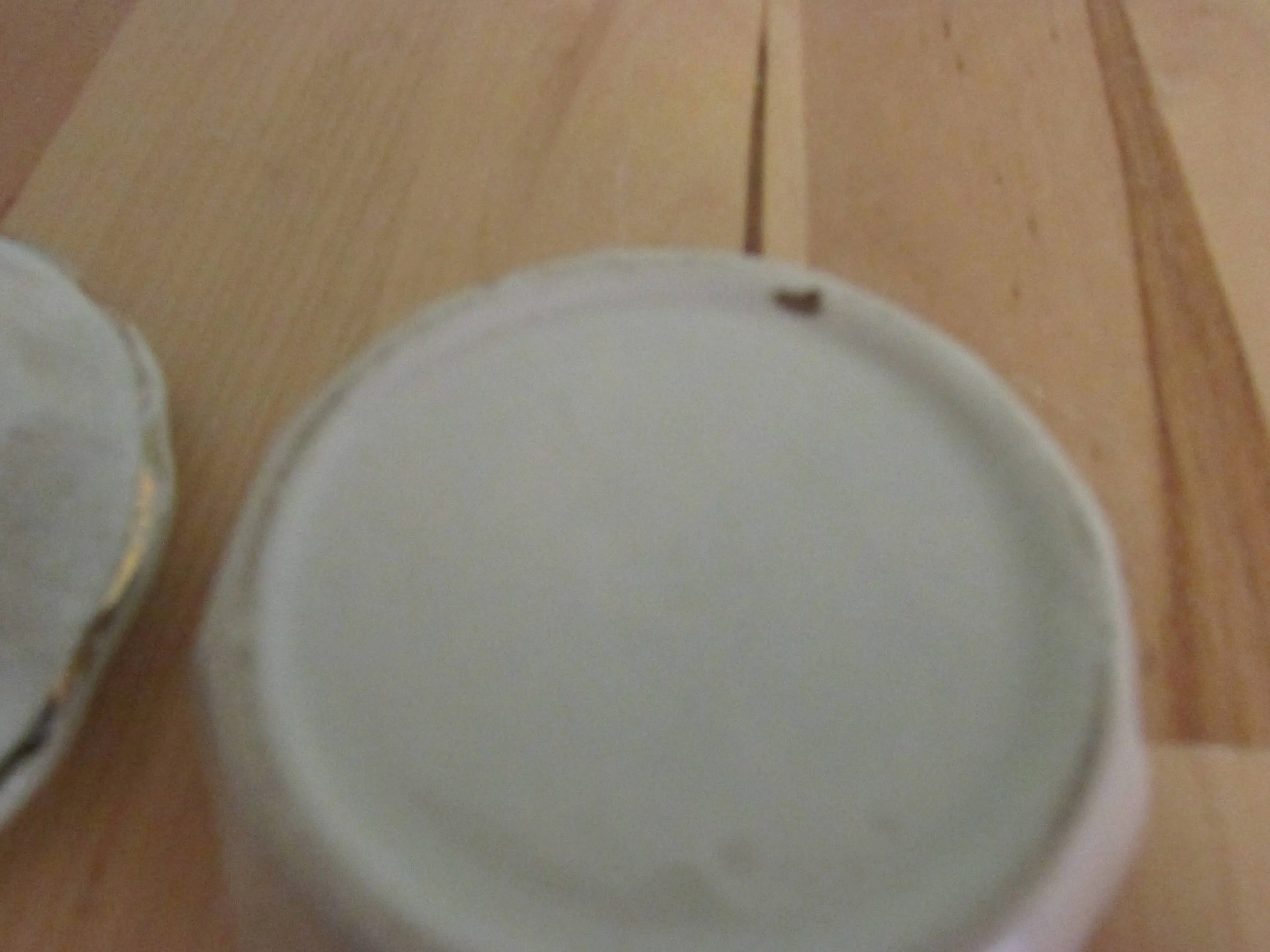 Vintage gilt edged porcelain powder jar with two dogs transfer detail