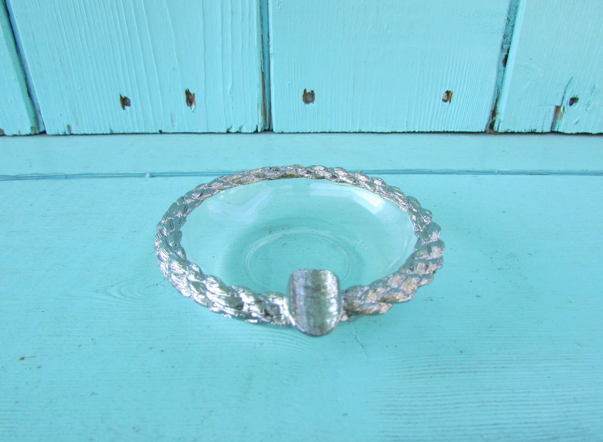 Vintage glass & silver-tone miniature ashtray, and matchbox holder