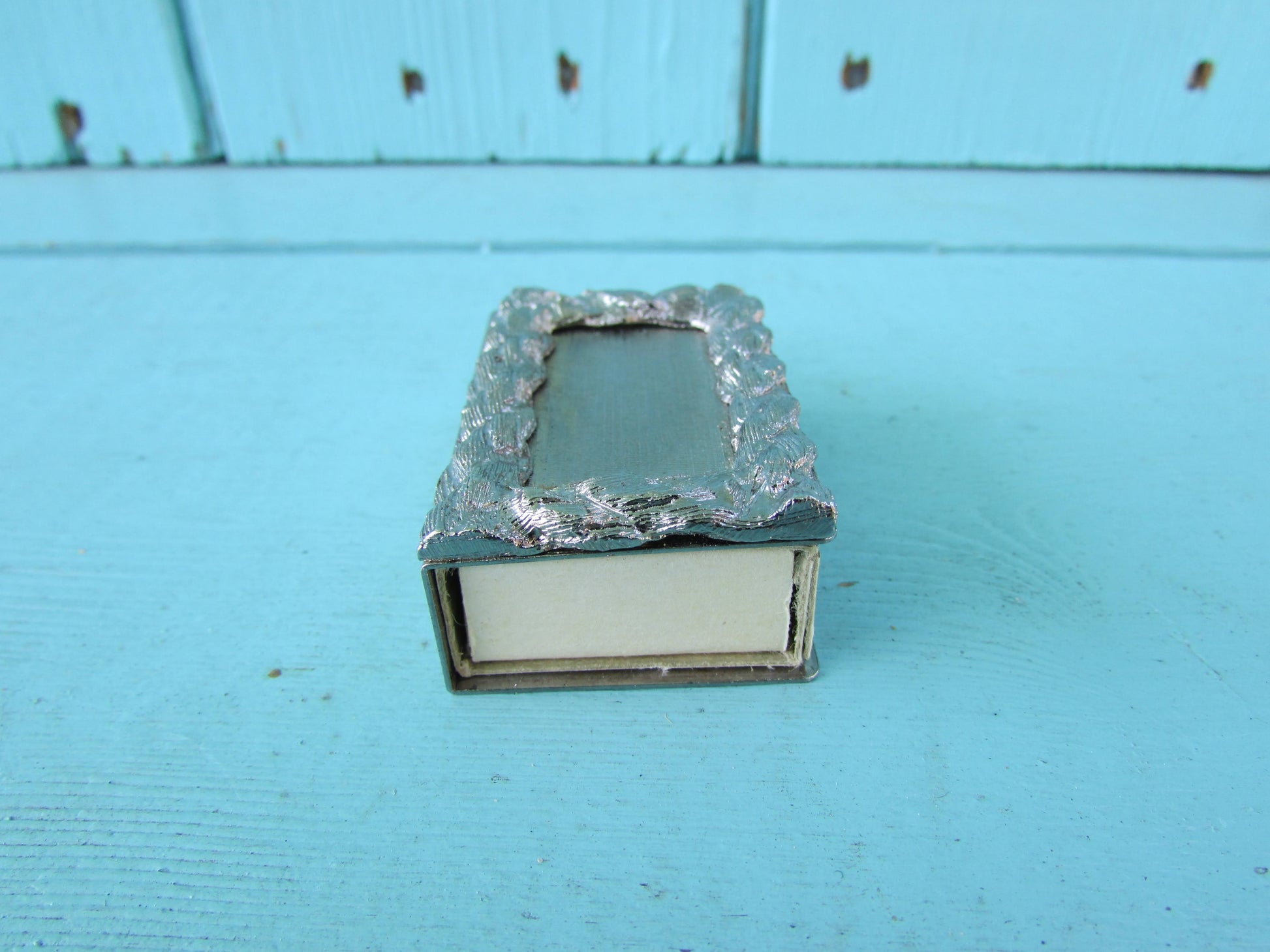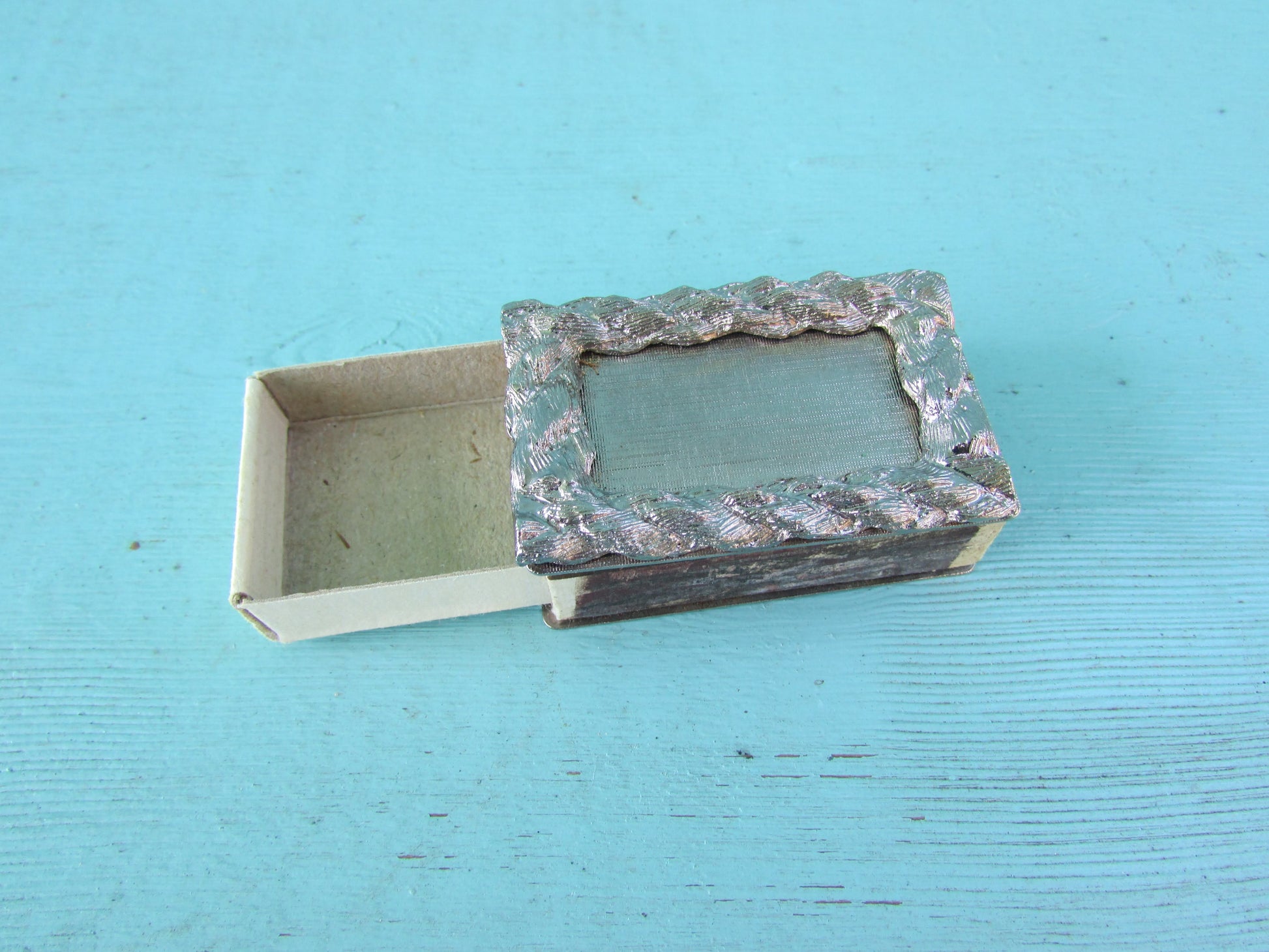 This charming vintage miniature ashtray combines clear glass and silver-tone metal for a timeless look. Measuring approximately 8 cm in diameter, it offers a delicate yet practical spot for ashes. Paired with a compact matchbox holder sized around 4.5 cm by 3 cm by 1.5 cm, it keeps matches handy and organized. Perfect for adding a touch of classic elegance to any setting or as a unique collectible gift.