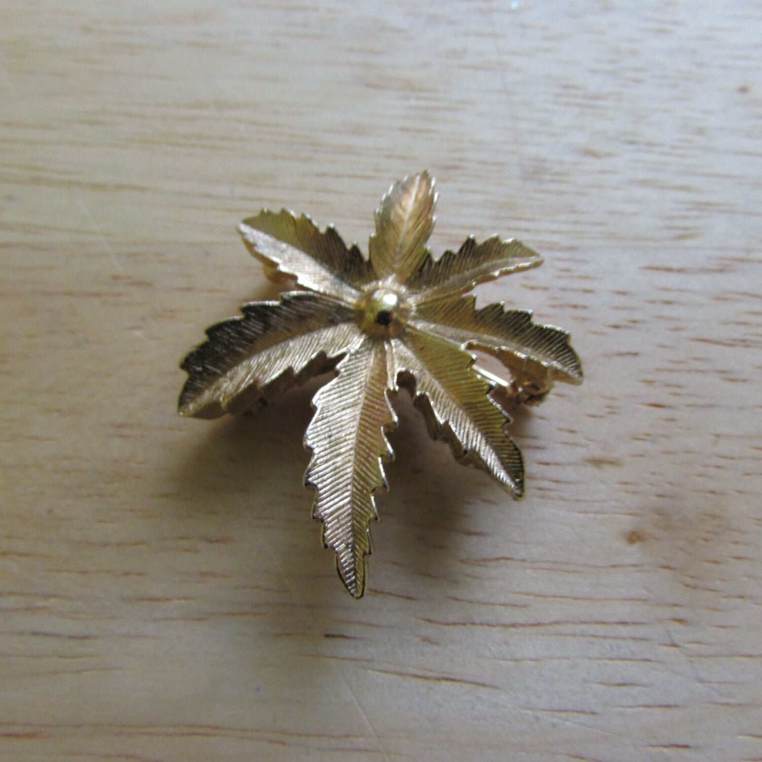 Vintage gold-tone palm frond leaf brooch, stamped CANADA