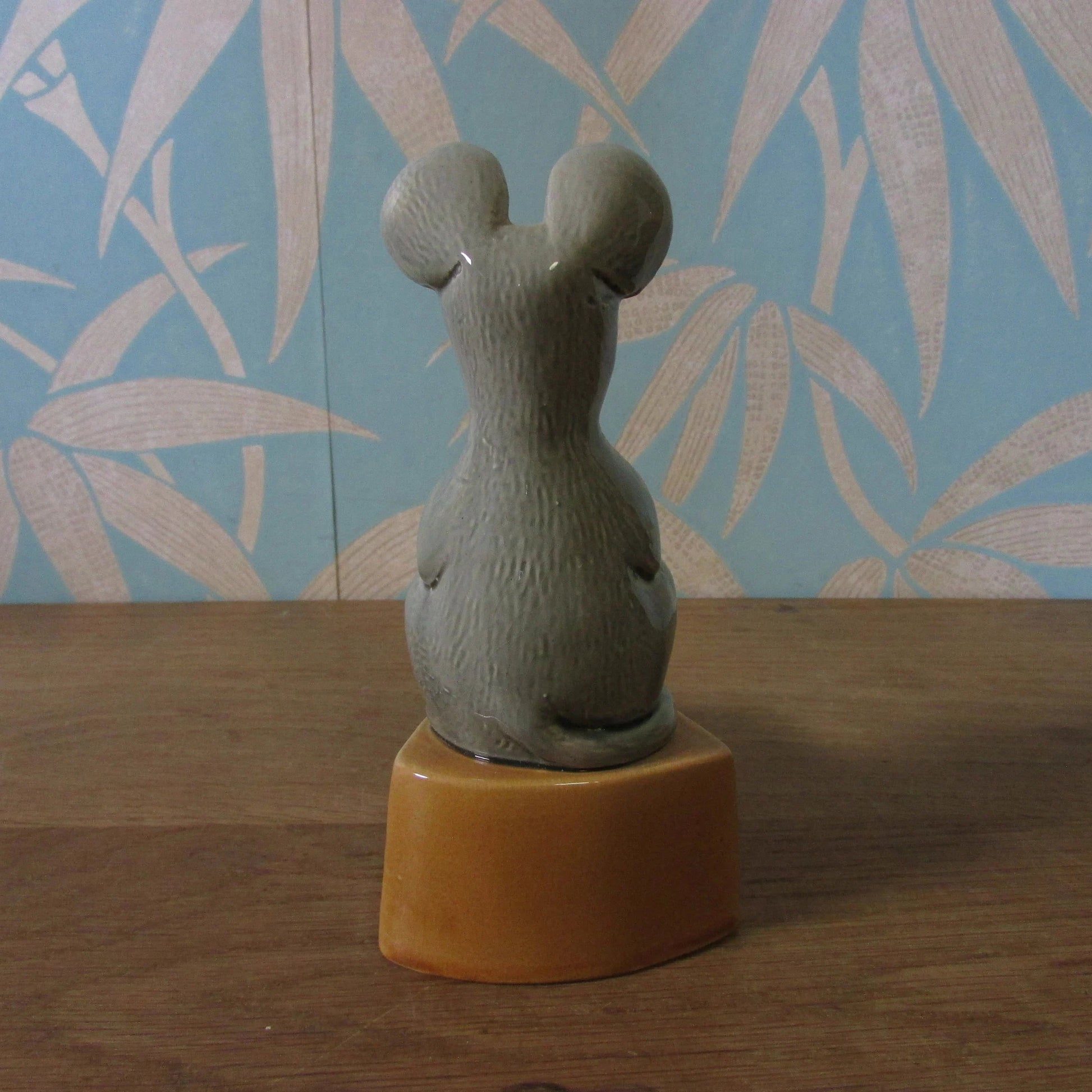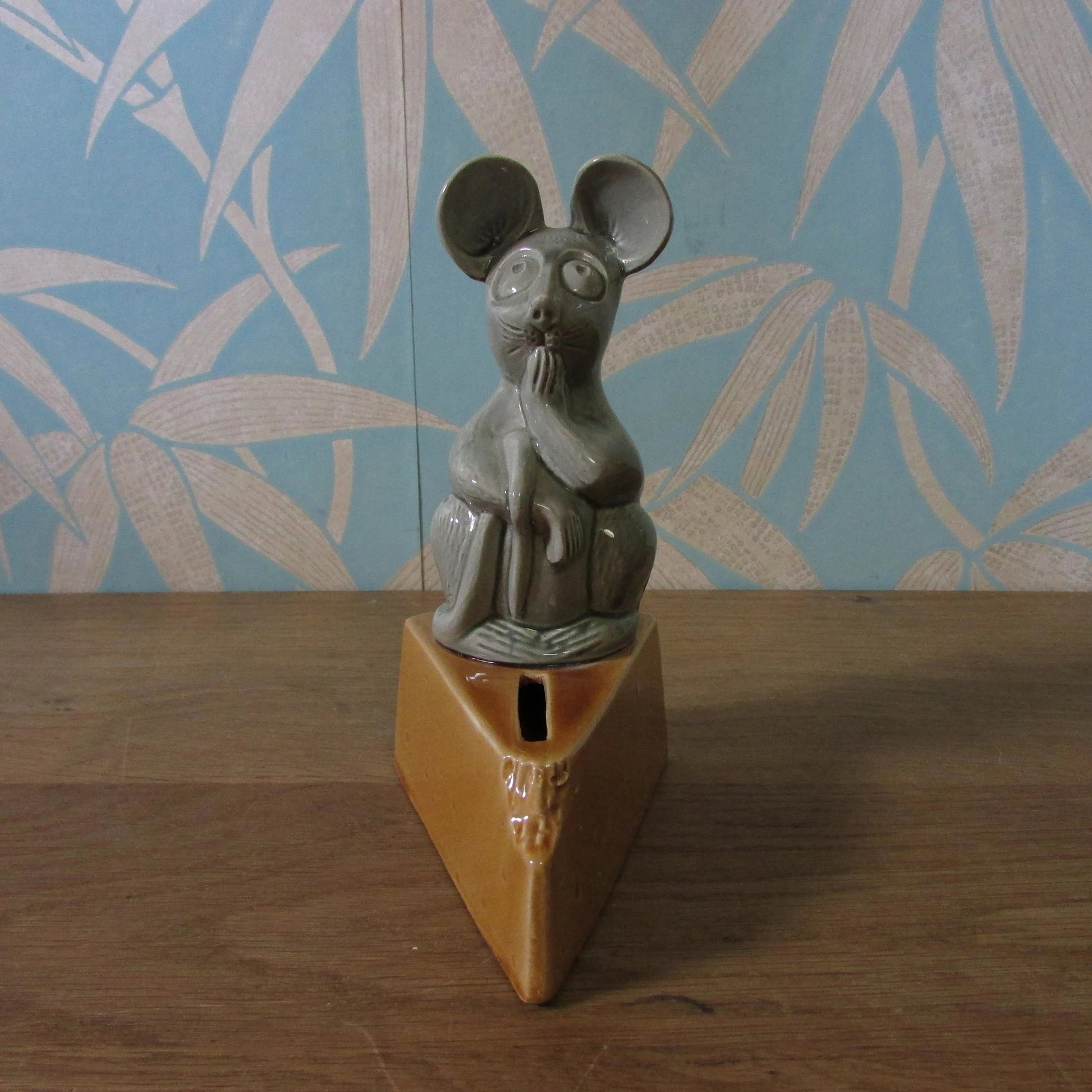 This charming vintage ceramic mouse perches cheerfully atop a wedge of cheese, ready to guard your spare change! With its whimsical grey finish and delightful character, it's the perfect quirky addition to any collector's shelf or desk. Standing 17cm tall with a sturdy base measuring 12.5cm x 7.5cm, this cheeky little fellow combines nostalgic appeal with practical storage. Whether you're a seasoned collectables enthusiast or simply love adorable vintage finds, this ceramic treasure brings a smile and a touch of retro charm to your space.