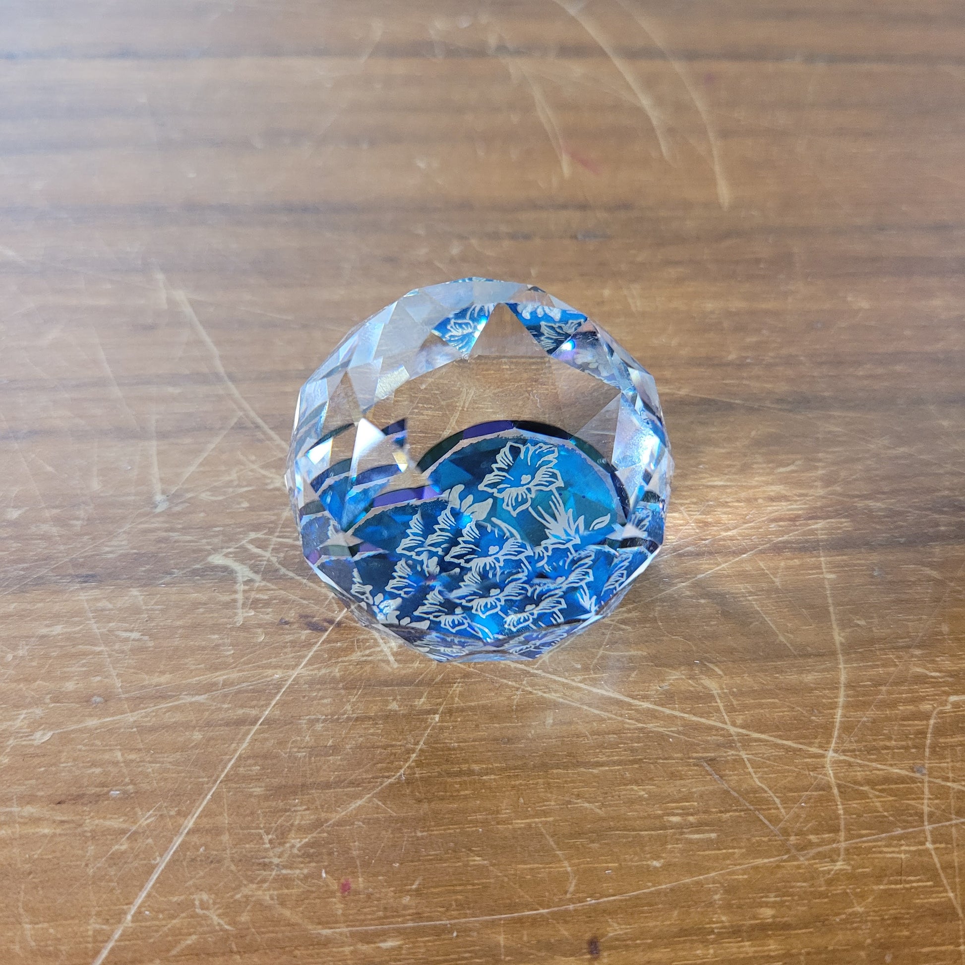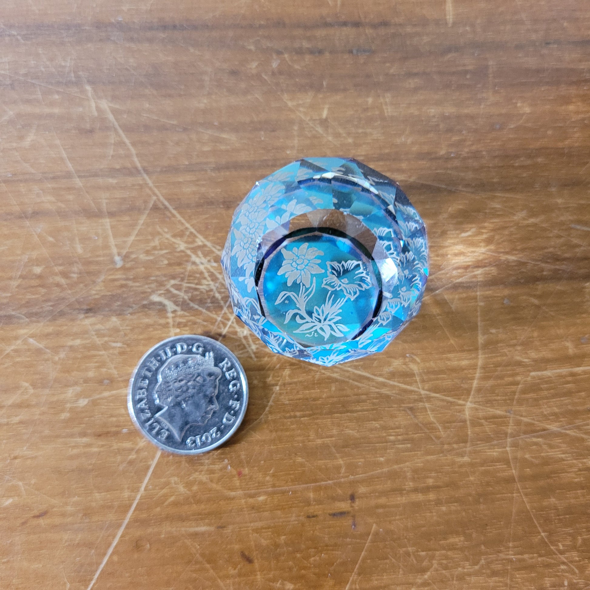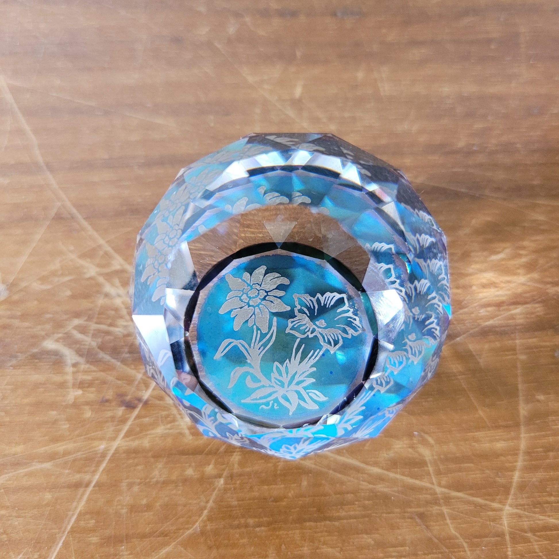 Vintage miniature Swarovski crystal Edelweiss flower round faceted glass paperweight