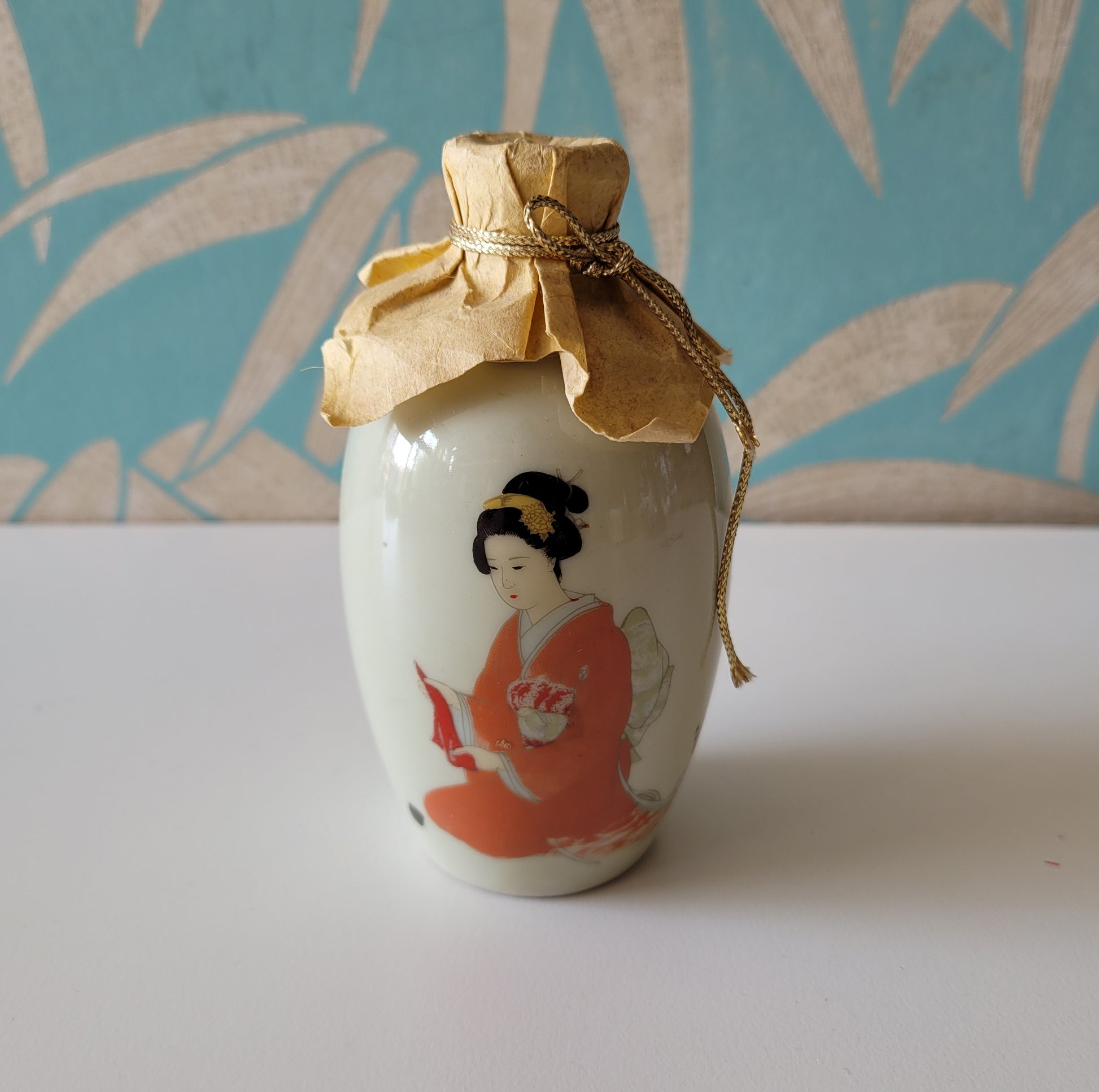 This charming vintage porcelain sake bottle features the Furisode design—celebrated for its flowing, graceful aesthetic—this petite flask stands at a neat 13cm, making it perfect for display or intimate gatherings. The delicate porcelain construction adds character to any collection. Whether you're a sake enthusiast, Japanese art lover, or keen collector, this piece brings a touch of cultural heritage and whimsy to your space.