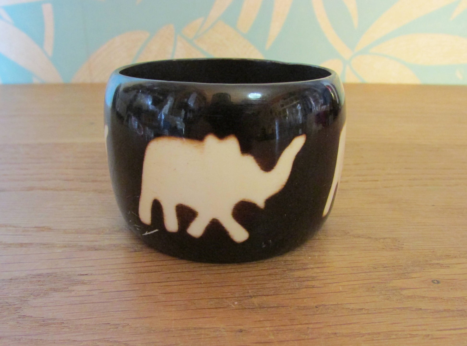 Vintage wide resin bangle with contrast elephant motif